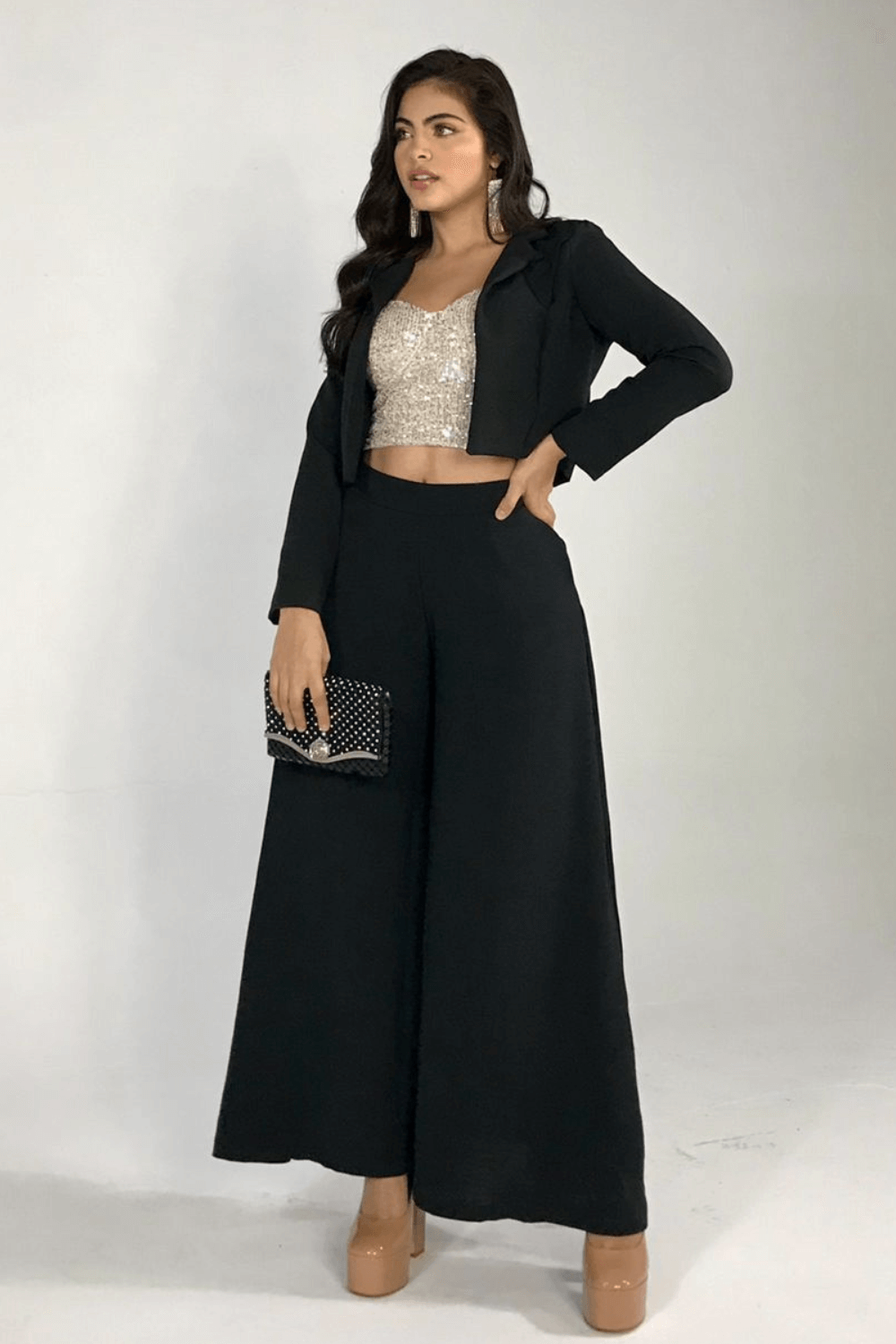 - Look Nocturno: Perfecto sobre un top brillante y una falda corta. Completa el outfit con unos botines y accesorios llamativos.