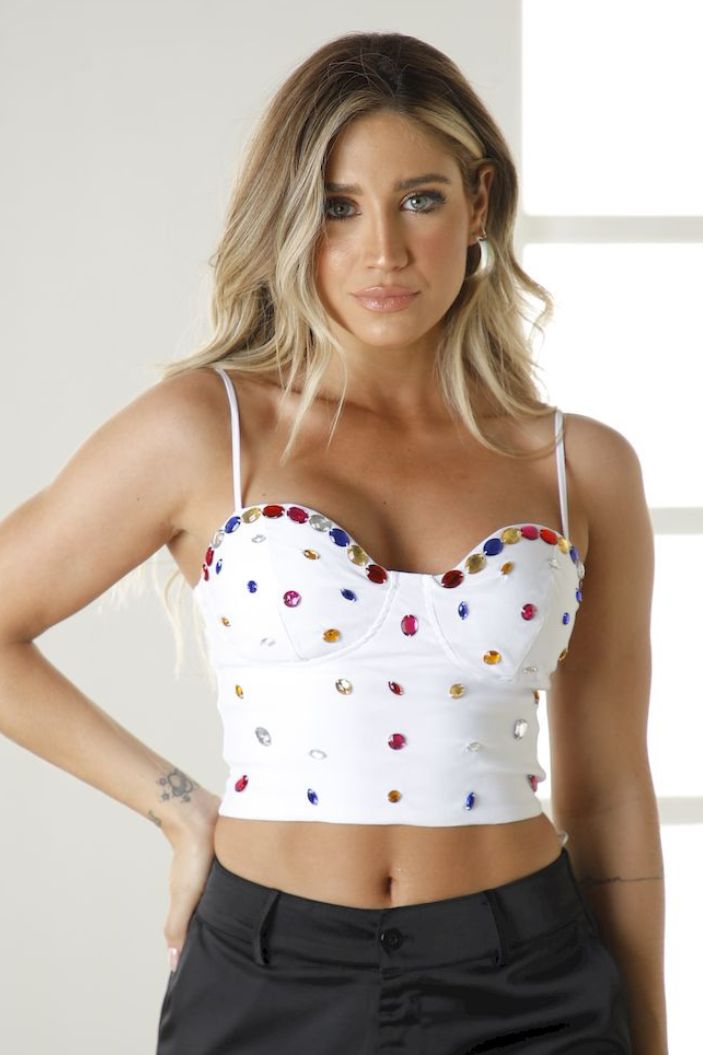 Blusa corta silueta ajustada para mujer elaborado en poliéster.