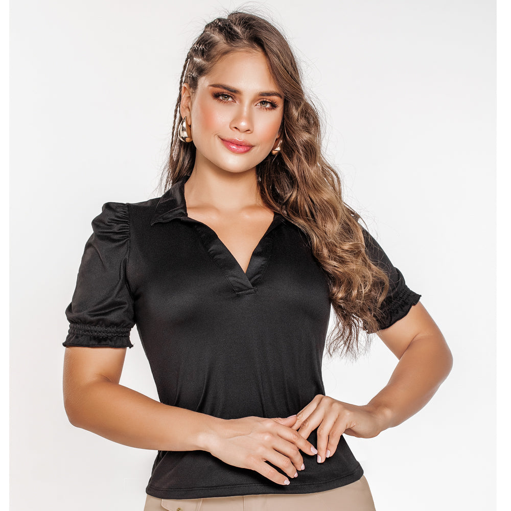 La blusa es perfecta para el verano ya que su lycra le brinda un tacto de durazno suave y fresco. Sus mangas bombachas le dan un estilo único y cómodo. Ideal para un look fresco y a la moda.