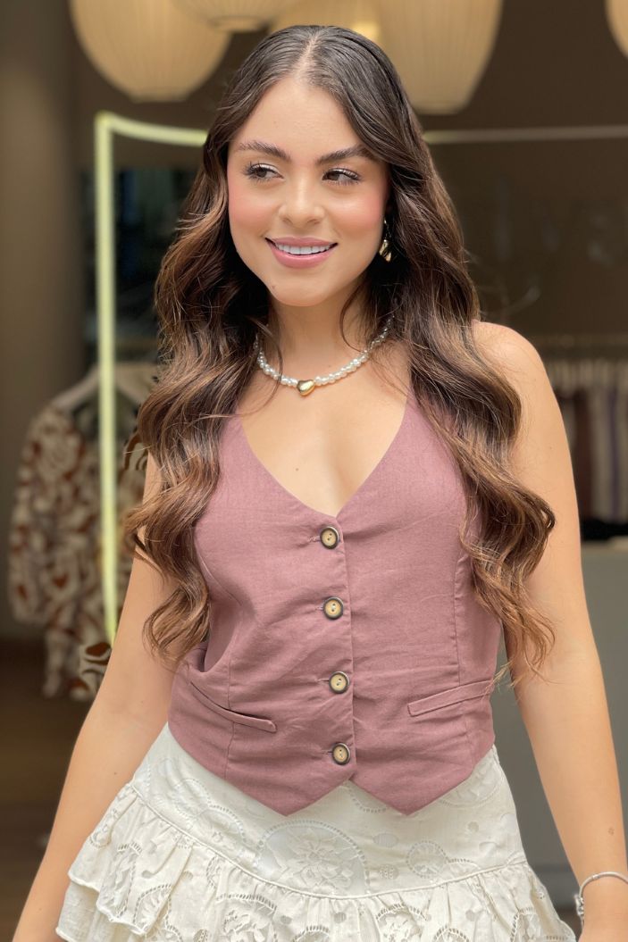 Chaleco silueta ajustada para mujer, elaborado en lino.