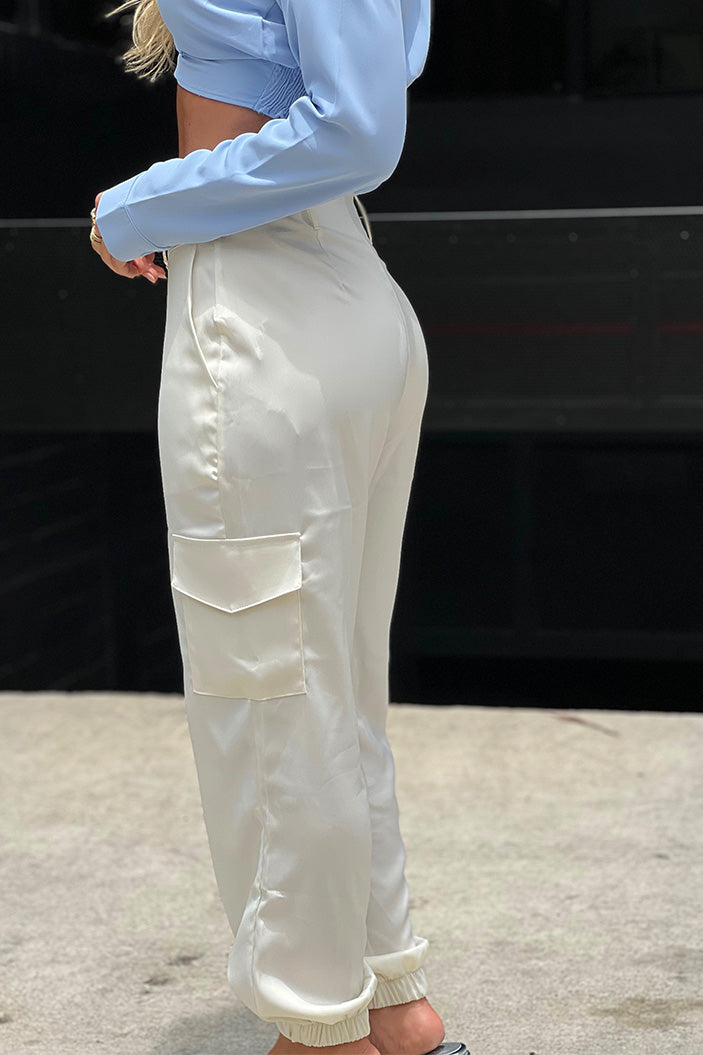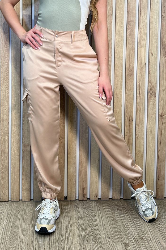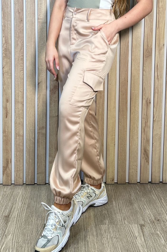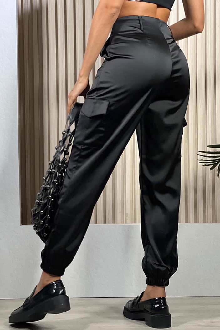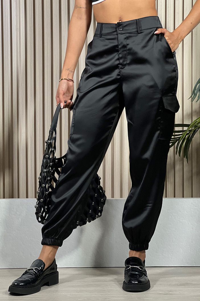 Pantalón silueta ajustada para mujer. Elaborado en satín.