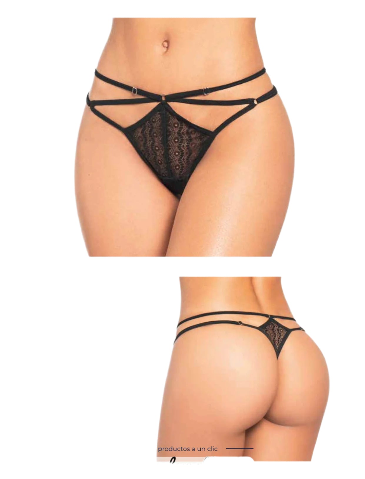 En encaje, diseño de elásticos en cintura con laterales graduables.